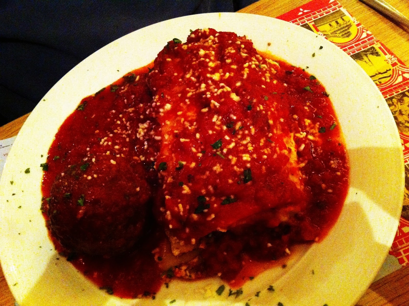 For my entree, I went with my favorite Italian dish, manicotti with meatball.
